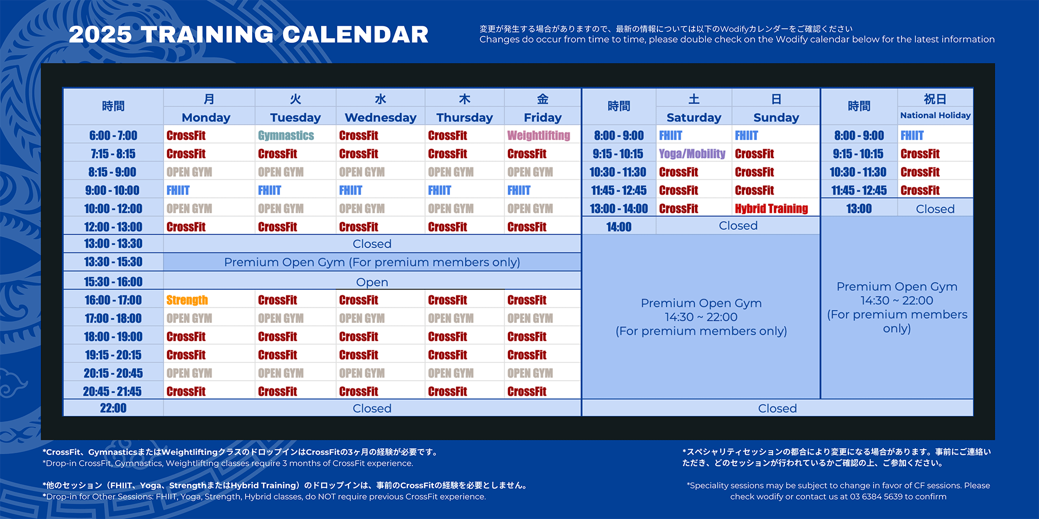 *Speciality sessions may be subject to change in favor of CF sessions. Please check wodify or contact us at 03 6384 5639 to double check.